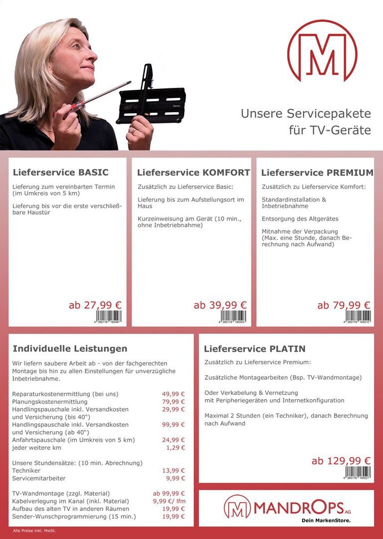 - Zusätzliche Montagearbeiten (Bsp. TV-Wandmontage)